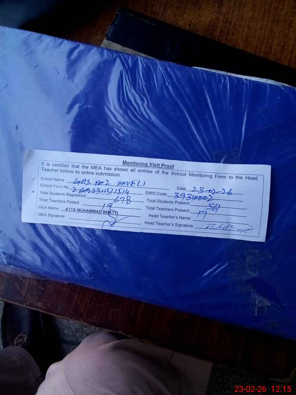 | EMIS Code: 39310002 | Name of School: GHS NO 2 HAVELI | |||