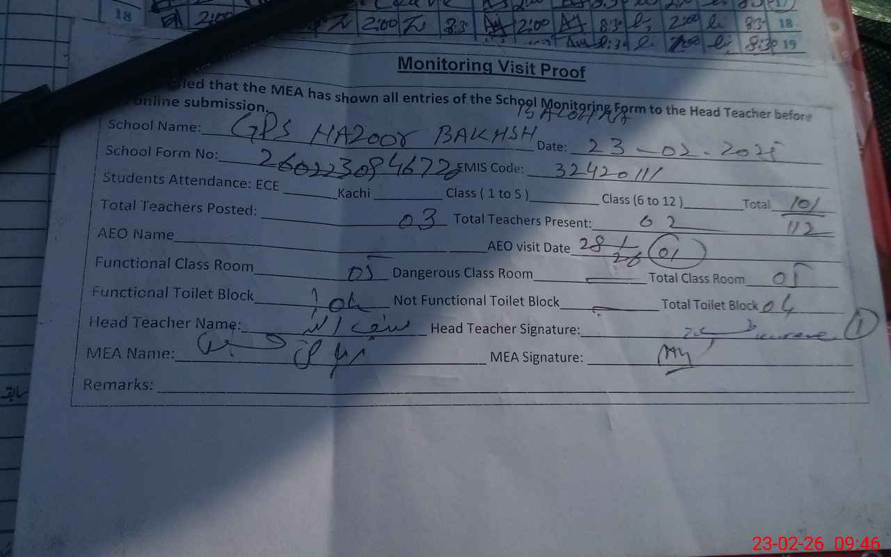 | EMIS Code: 32420111 | Name of School: GPS HAZOOR BAKHSH BALHORA | |||