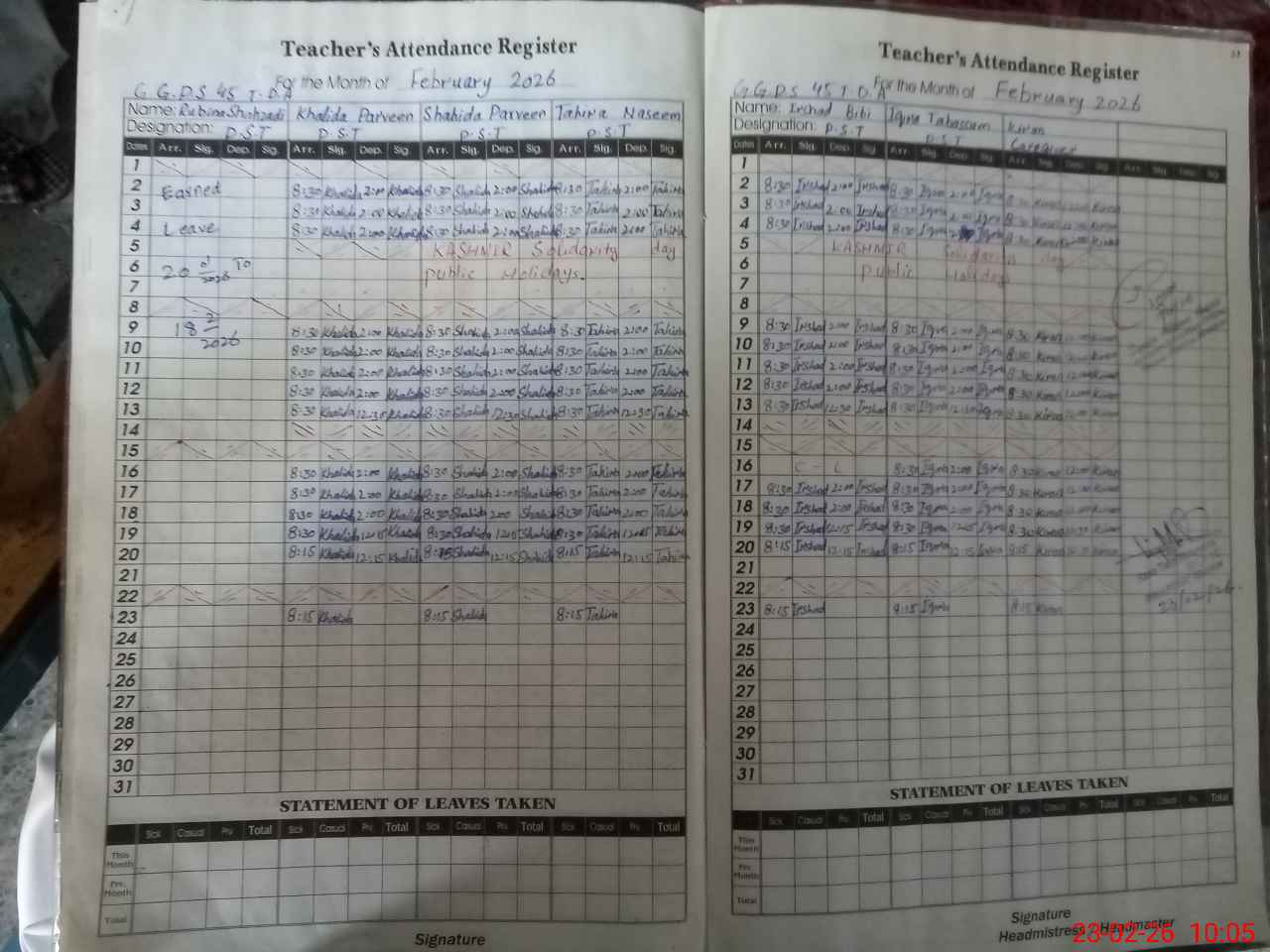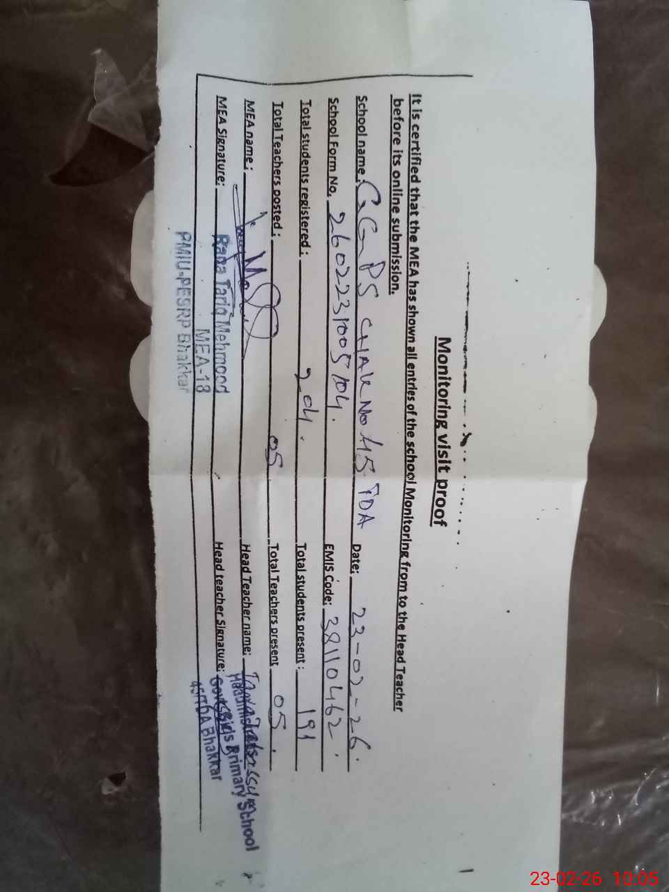 | Attendance Register | Head Teacher | MEA with School | Visit Proof |