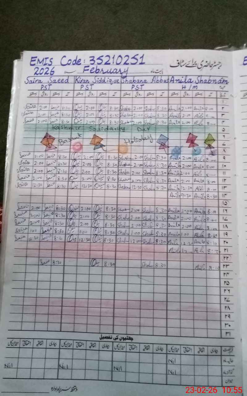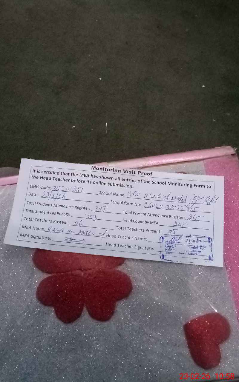 | EMIS Code: 35210251 | Name of School: GPS KHALID MODEL KOTLI PIR ABDUL | |||