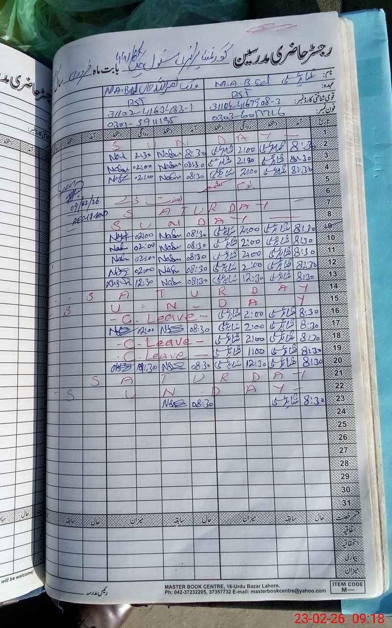 | Name: Sh**** Al**** Designation: (School Headmaster's/Headmistress's) PST Phone/Cell Number: 03**** |