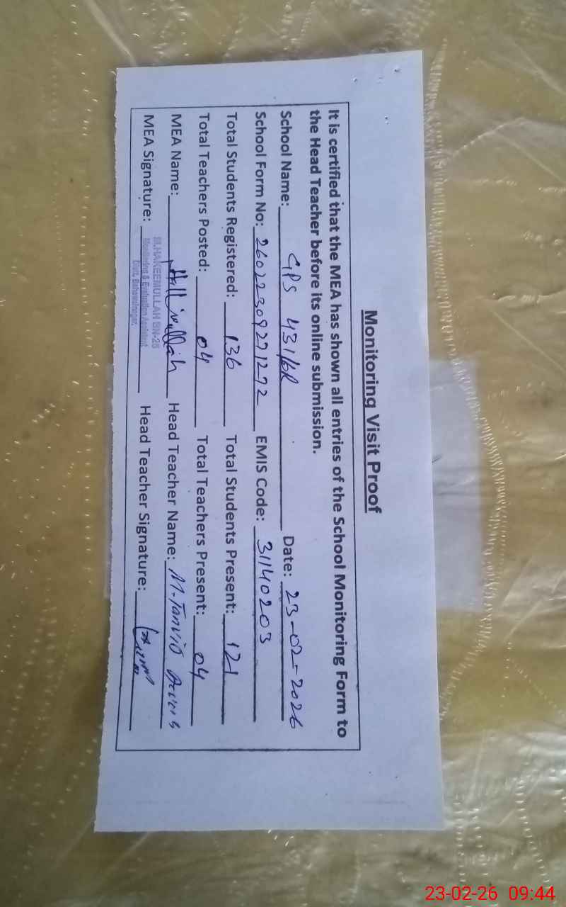 | EMIS Code: 31140203 | Name of School: GPS CHAK NO 431/6-R | |||