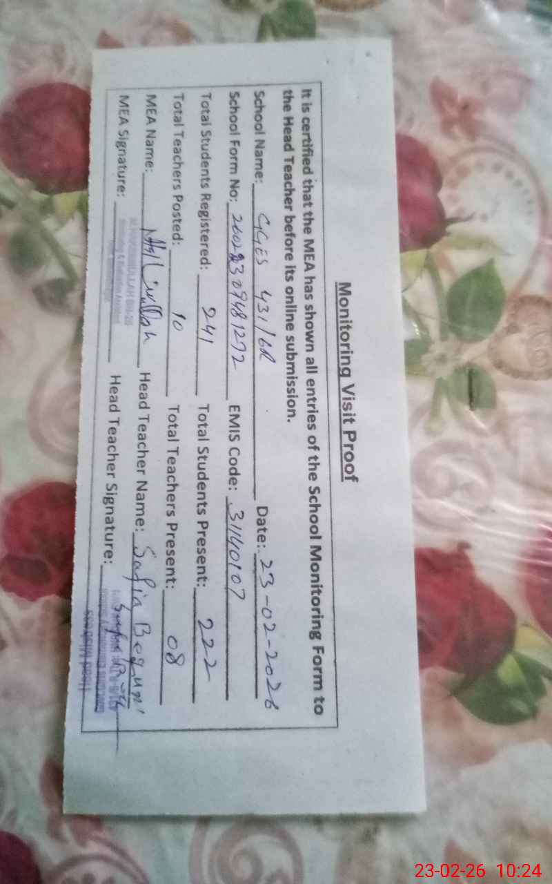 | EMIS Code: 31140107 | Name of School: GGES CHAK 431/6-R | |||