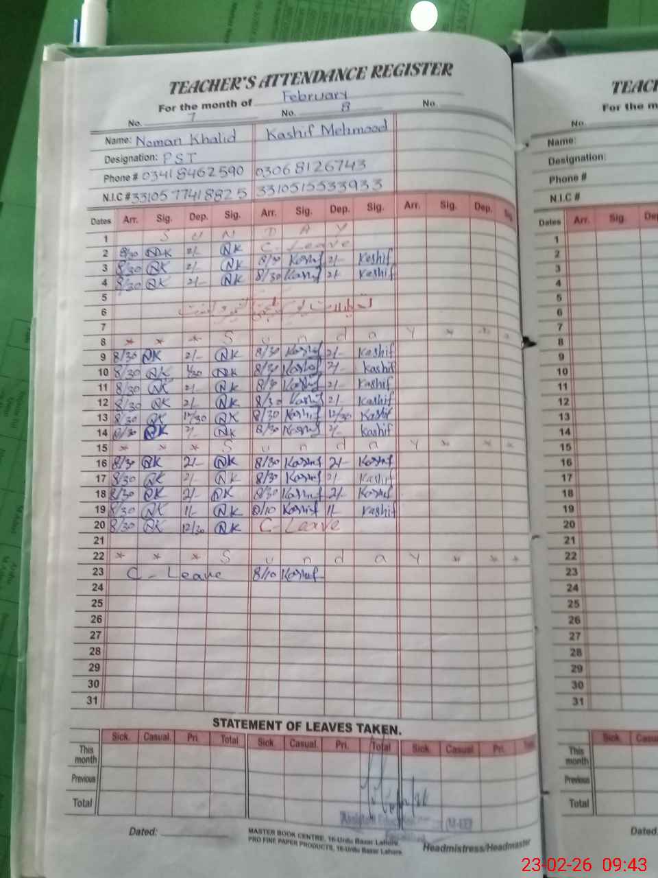 | Name: MU**** AM**** KH**** Designation: (School Headmaster's/Headmistress's) SST (GENERAL ) Phone/Cell Number: 03**** |