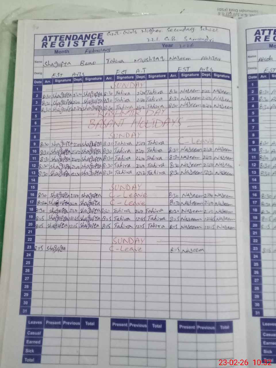 | Monitoring Date: 23-02-2026 | Start Time: 23-02-2026 09:49 AM | End Time: 23-02-2026 10:33 AM | Name of MEA: MU**** MU**** | |