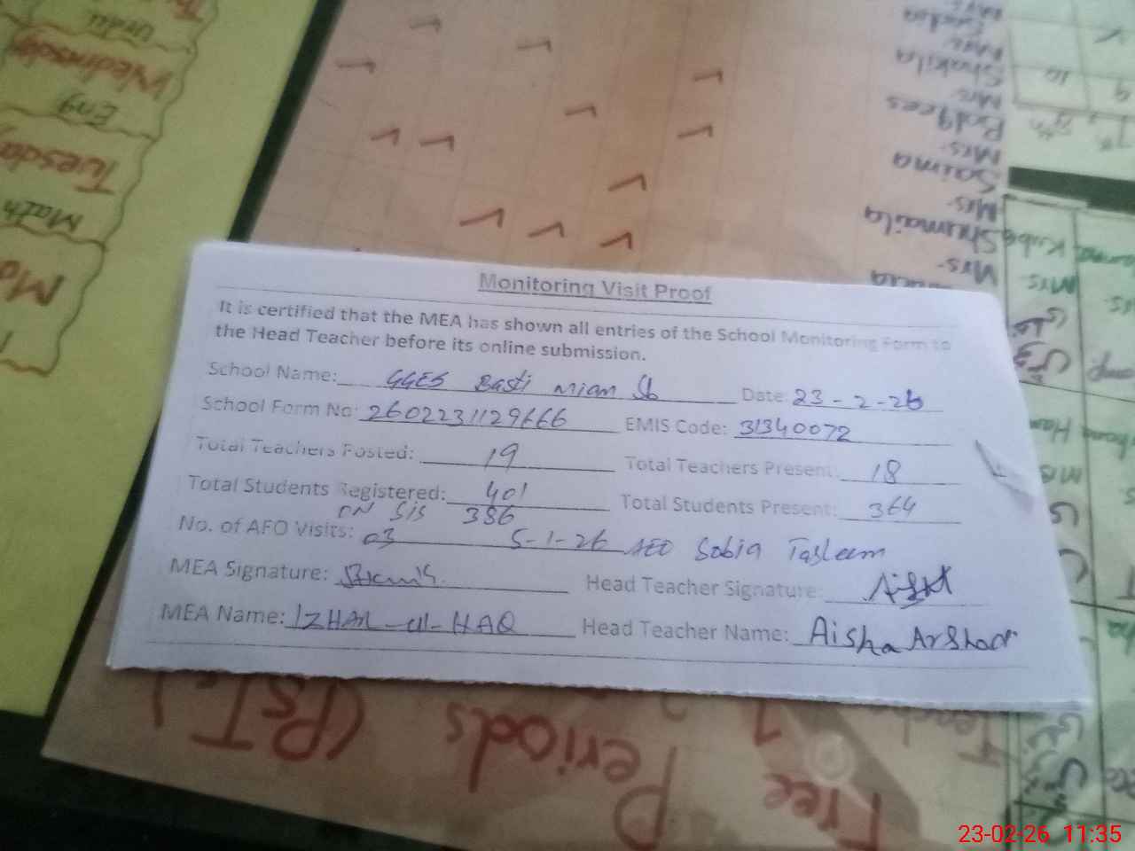 | EMIS Code: 31340072 | Name of School: GGES BASTI MIAN SAHIB | |||