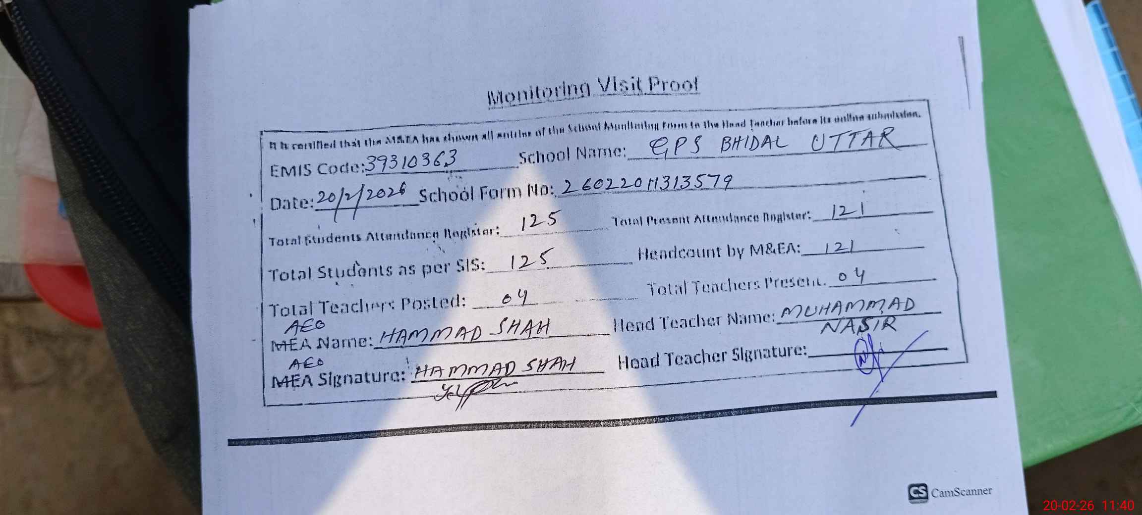 | EMIS Code: 39310363 | Name of School: GPS BHIDAL UTAR | |||