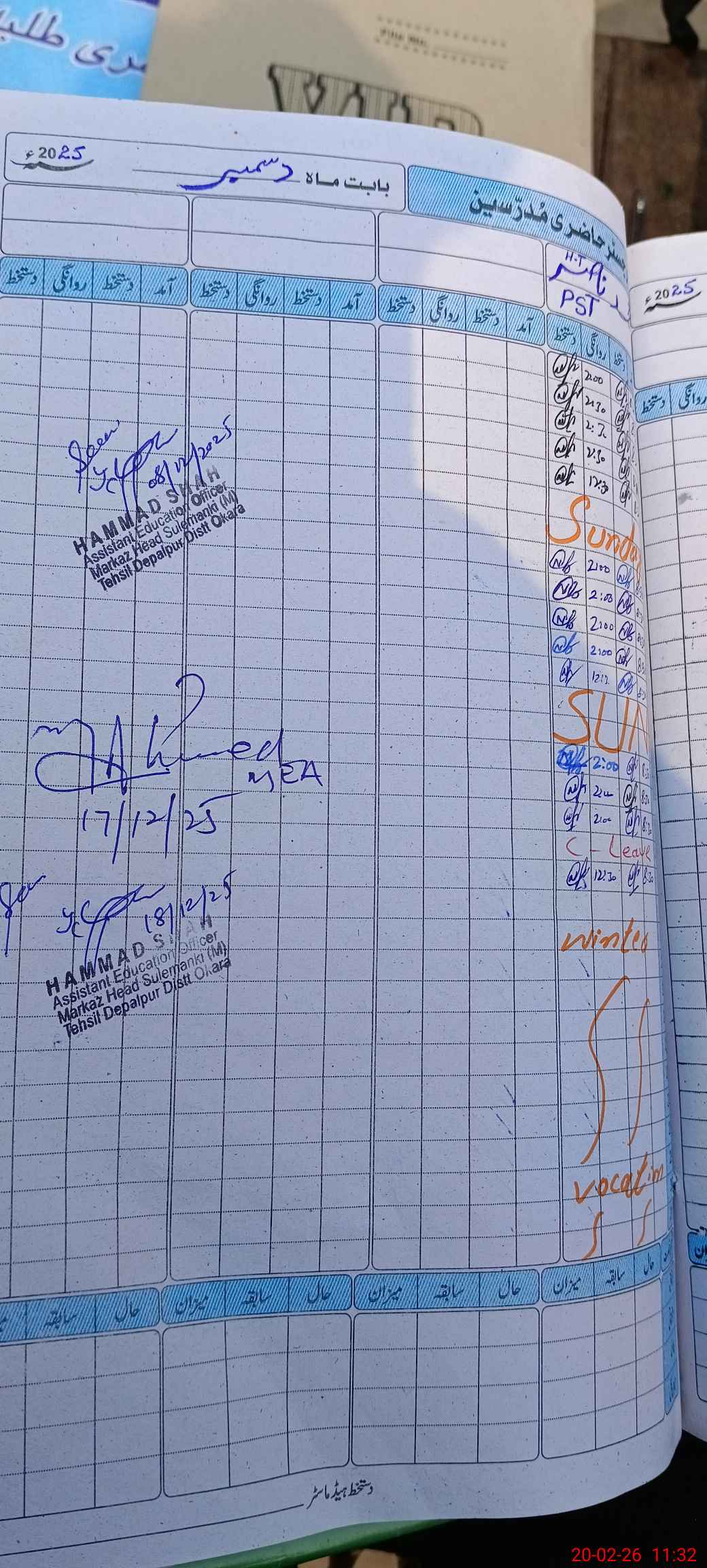 | Name: MU**** NA**** Designation: (School Headmaster's/Headmistress's) PST Phone/Cell Number: 03**** |