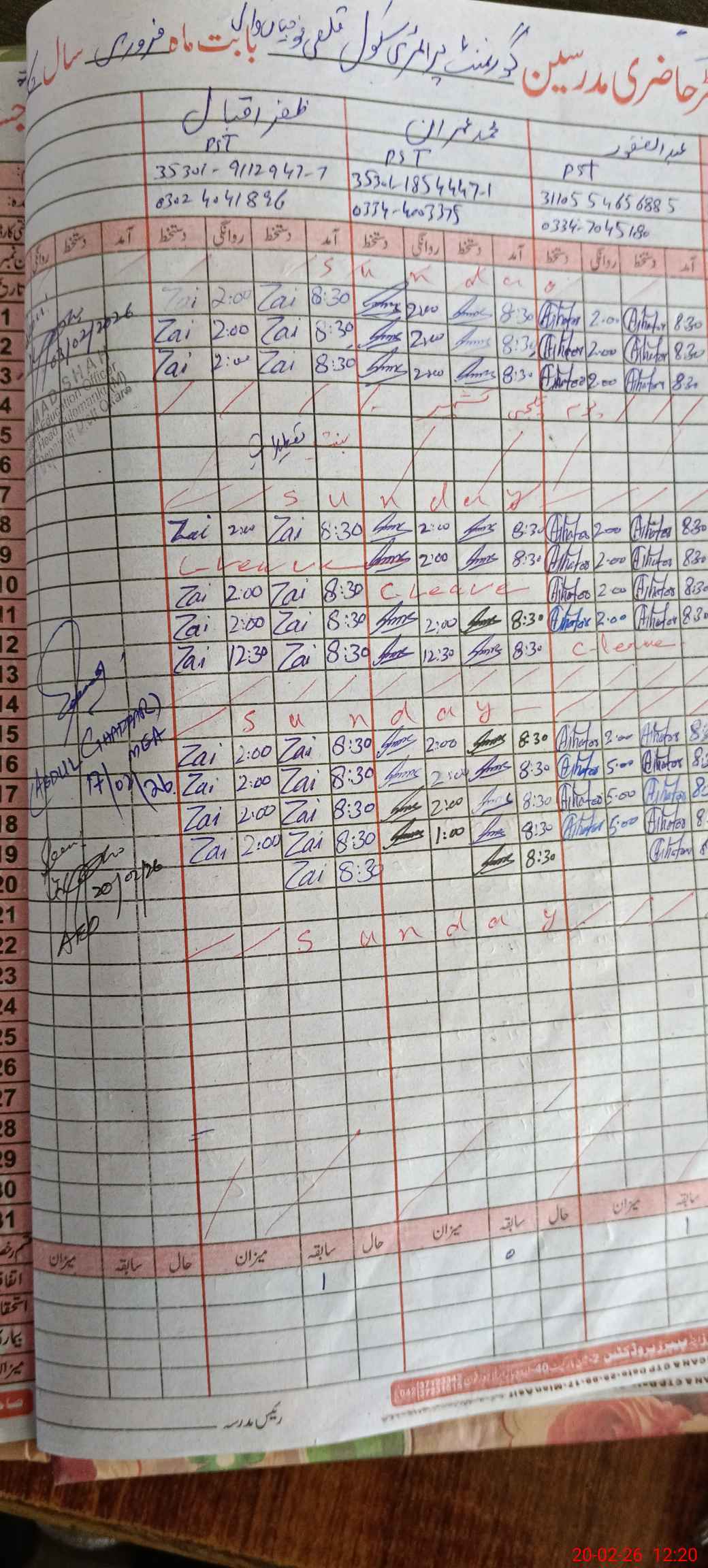 | Name: Ab**** Gh**** Designation: (School Headmaster's/Headmistress's) PST Phone/Cell Number: 03**** |