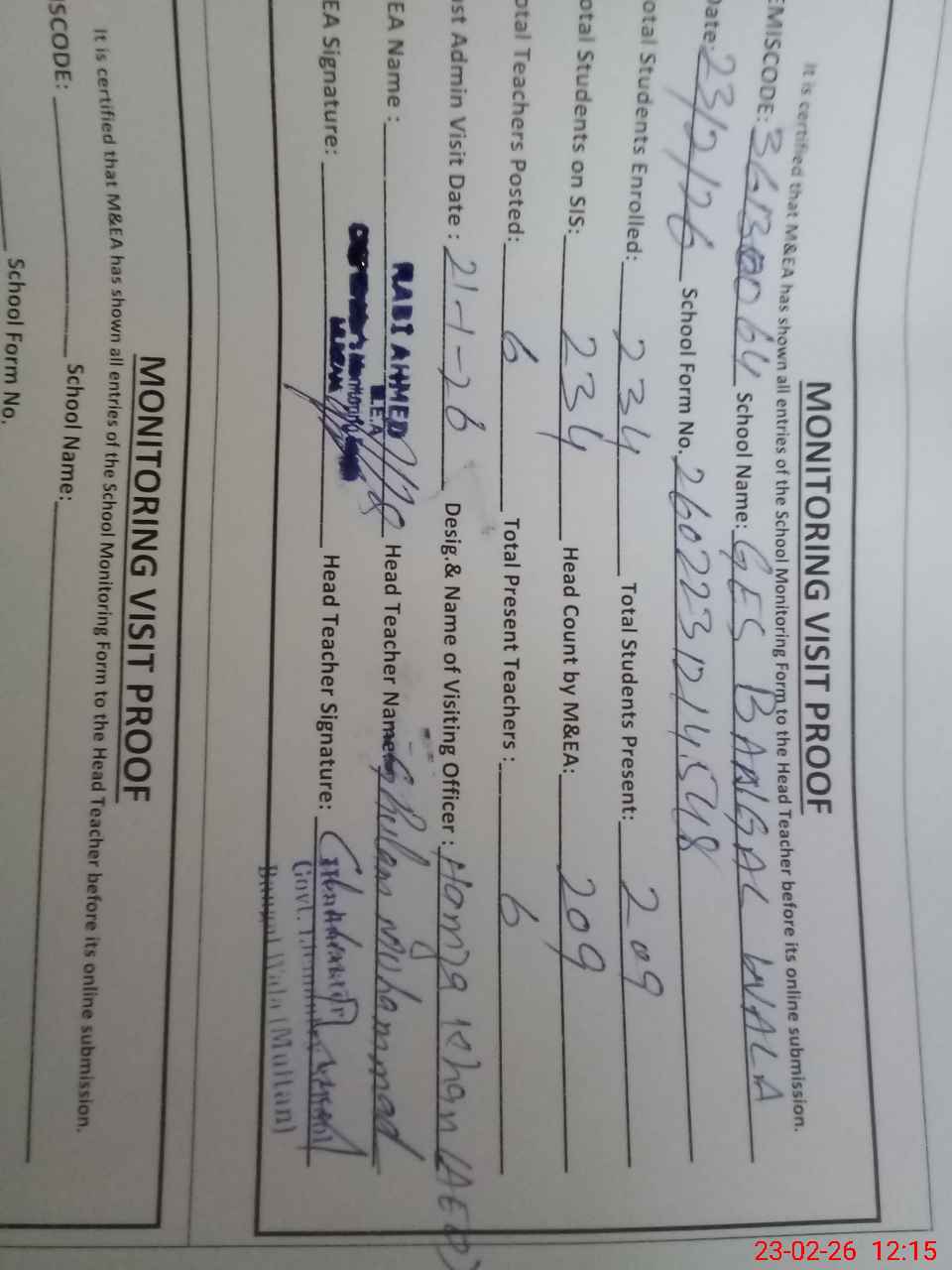 | EMIS Code: 36130064 | Name of School: GES BANGAL WALA P/O KOT ABBAS MELA RAM | |||