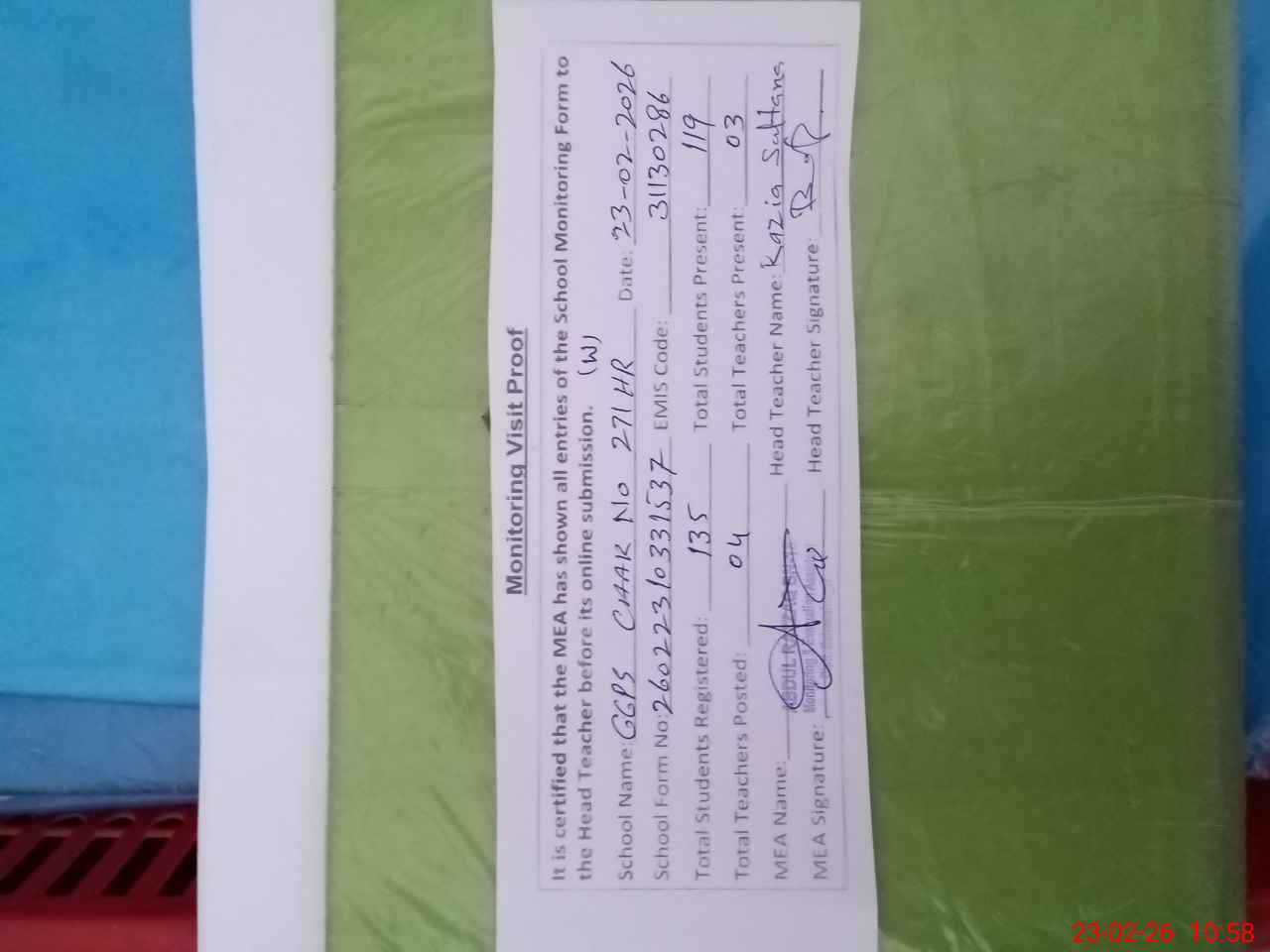 | EMIS Code: 31130286 | Name of School: GGPS CHAK NO 271 HR W | |||