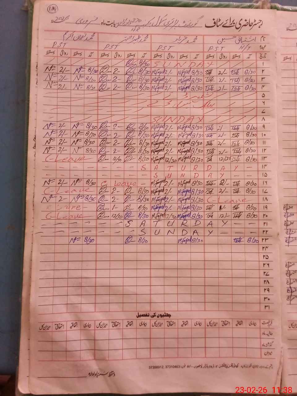 | CNIC | Full Name | Designation | R/C | Absence During Last Calender Month |