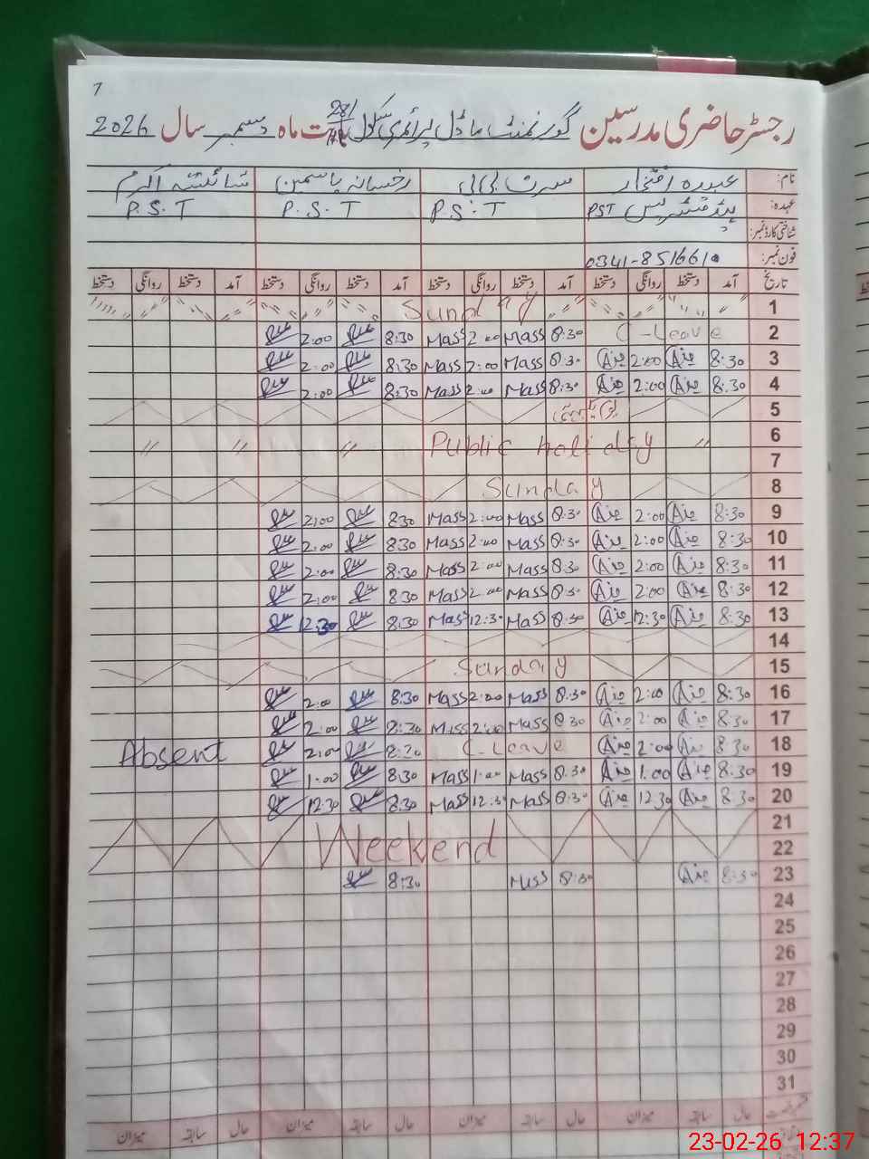 | 31**** | Sh**** Ak**** | PST (Science-Math) | Regular | 0 | 0 | 0 | 0 | 0 | 0 | 0 | 0 | 0 | Absent (Un-Authorized) |
