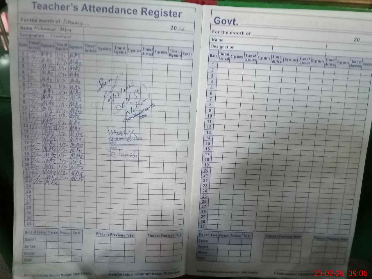 | Name: Ar**** Al**** Qu**** Designation: (School Headmaster's/Headmistress's) SR.HM Phone/Cell Number: 03**** |