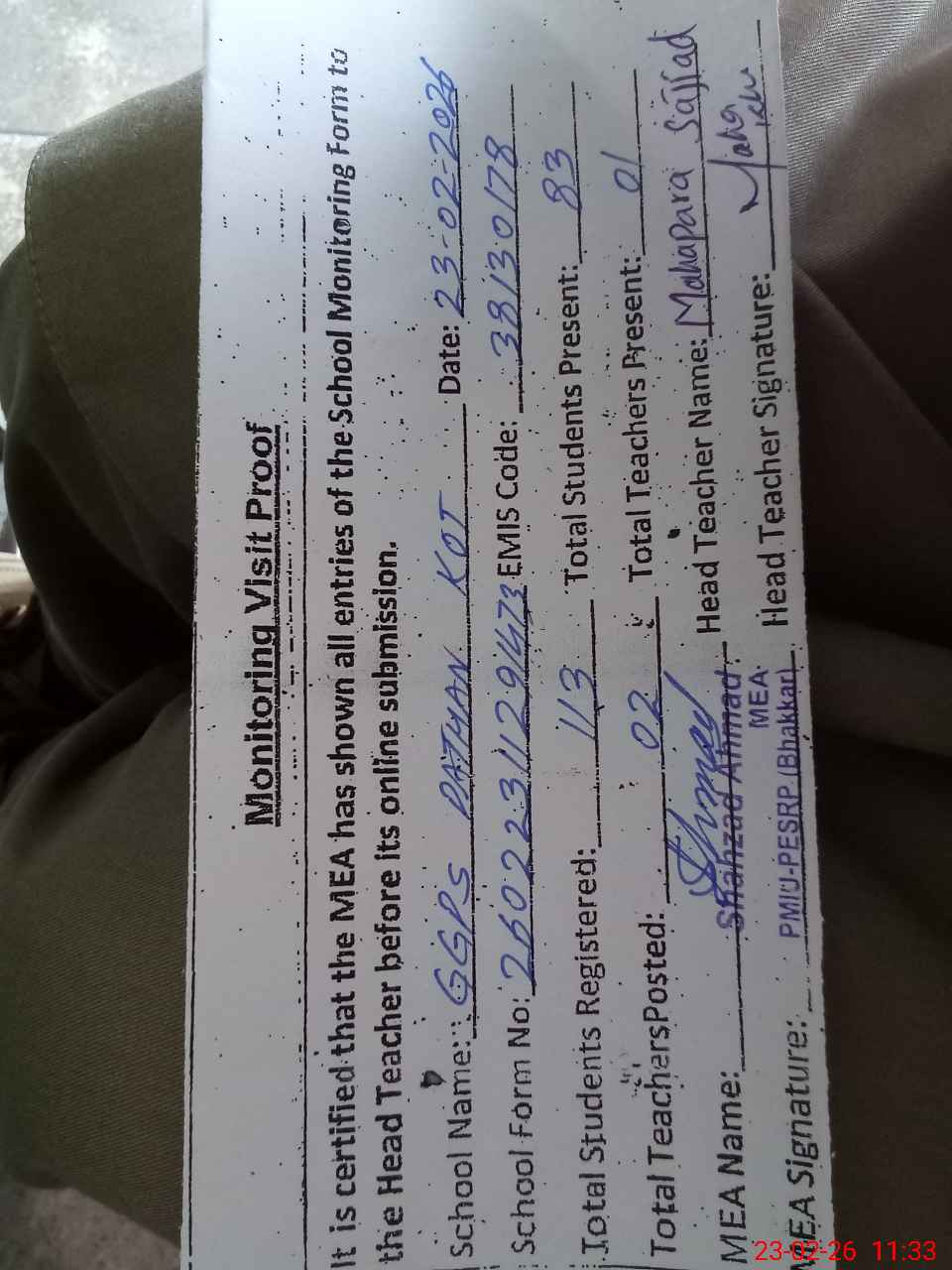 | Monitoring Date: 23-02-2026 | Start Time: 23-02-2026 11:09 AM | End Time: 23-02-2026 11:33 AM | Name of MEA: SH**** AH**** | |