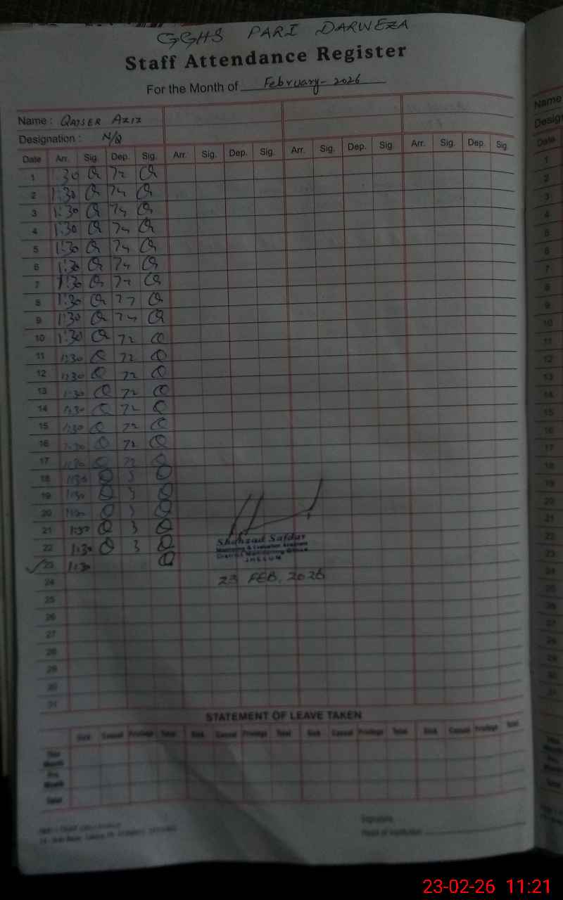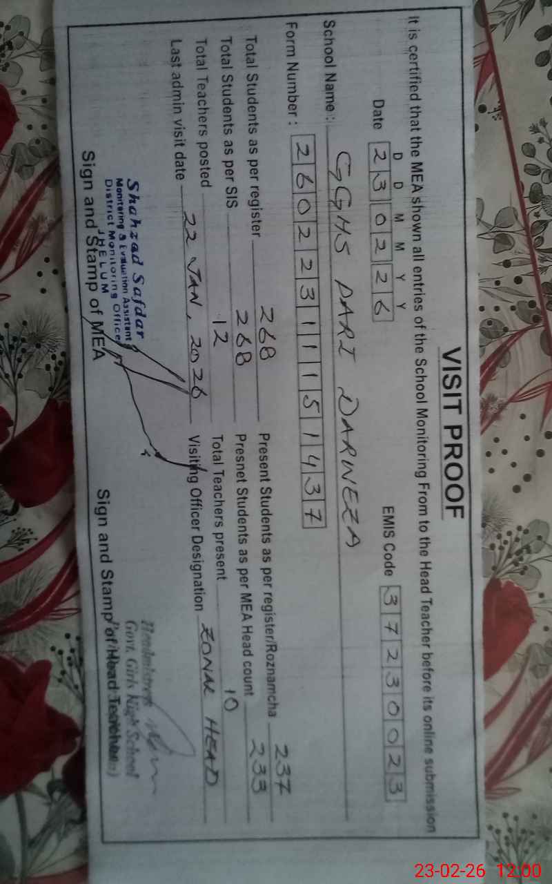 | EMIS Code: 37230023 | Name of School: GGHS PARI DERWEZA | |||