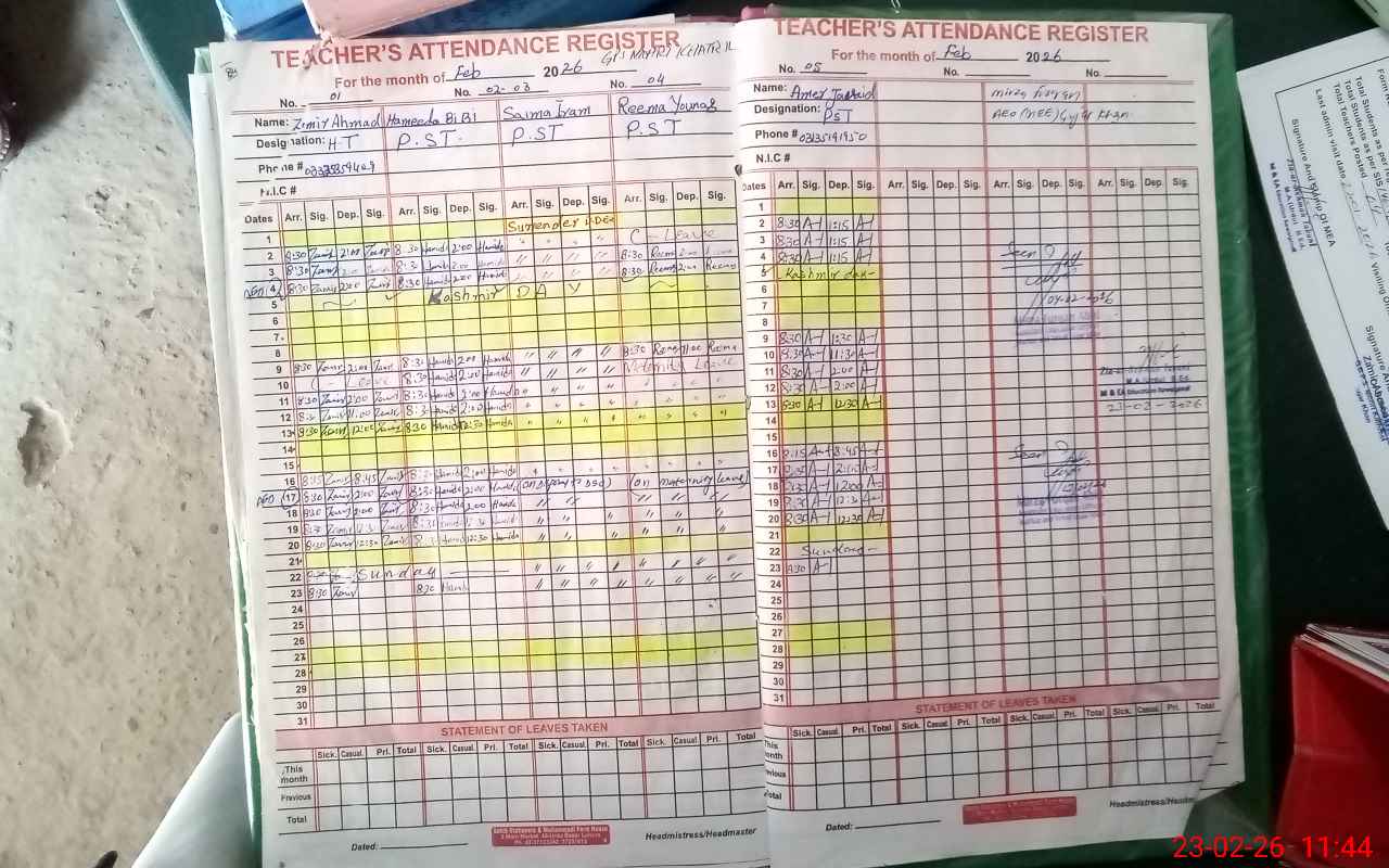 | Attendance Register | Head Teacher | MEA with School | Visit Proof |