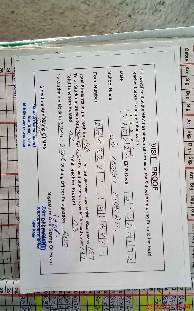 | EMIS Code: 37360173 | Name of School: GPS MOHRI KHTRIAL | |||