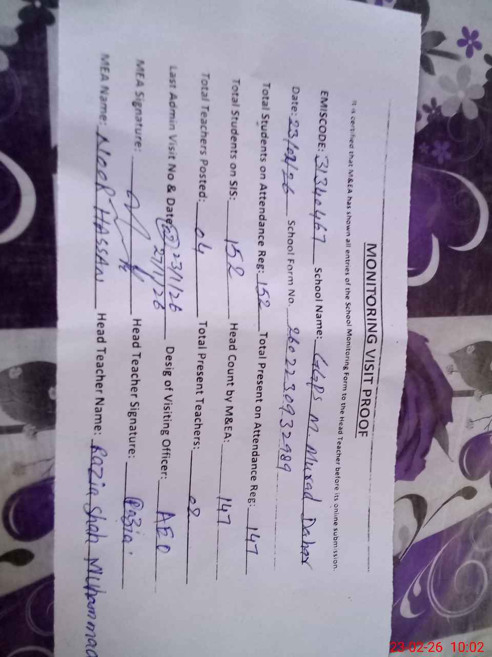 | EMIS Code: 31340467 | Name of School: GGPS MUHAMMAD MURAD DAHAR | |||