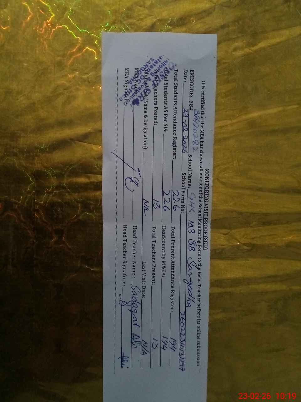 | EMIS Code: 38420282 | Name of School: GHS CHAK NO.103 SB | |||