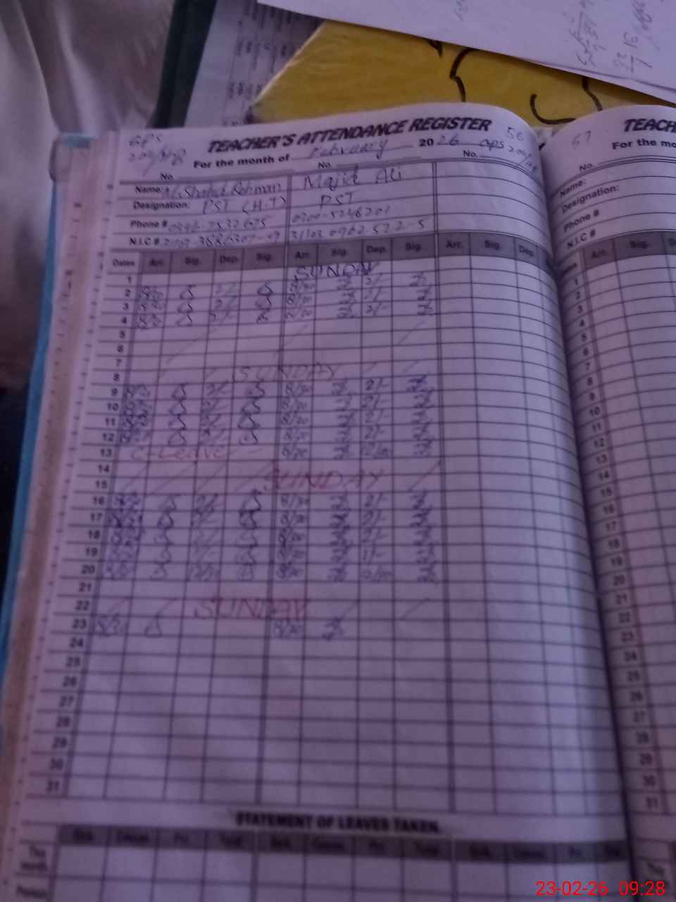| Name: Mu**** Sh**** Re**** Designation: (School Headmaster's/Headmistress's) Pst Phone/Cell Number: 03**** |