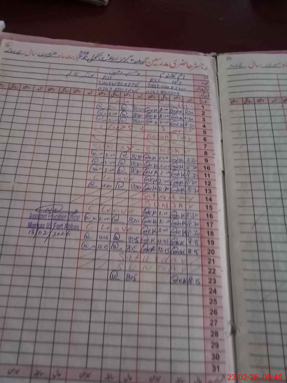 | District: BAHAWALNAGAR | Tehsil: FORT ABBAS | Markaz: FTS-V-FEMALE | Level: Primary | |
