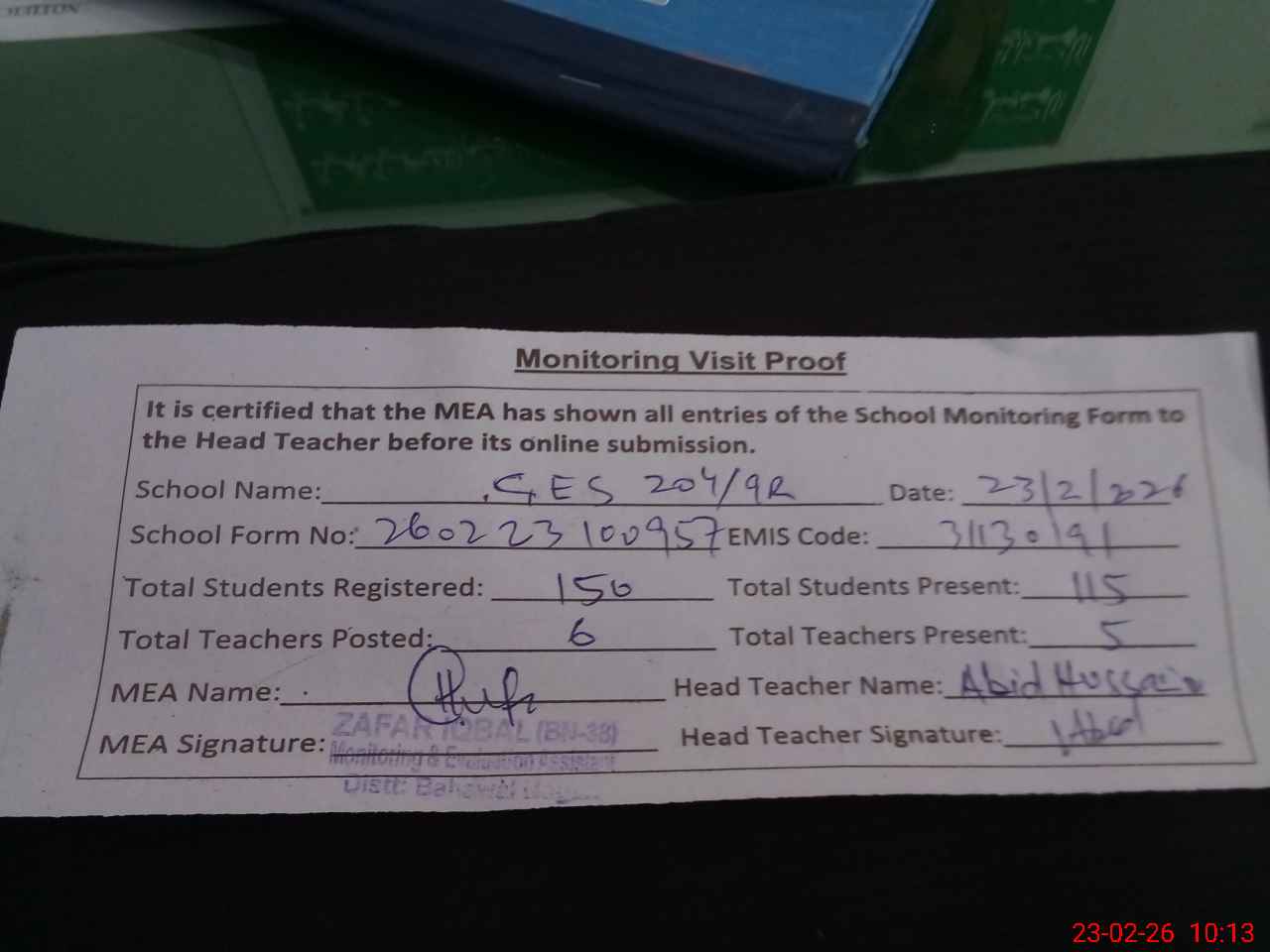 | Monitoring Date: 23-02-2026 | Start Time: 23-02-2026 09:55 AM | End Time: 23-02-2026 10:13 AM | Name of MEA: Za**** Iq**** BN**** | |