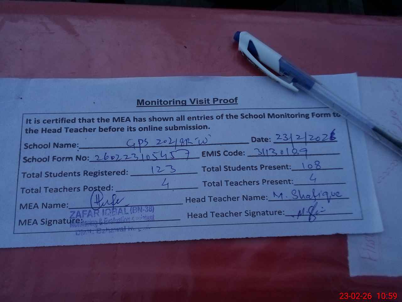 | Monitoring Date: 23-02-2026 | Start Time: 23-02-2026 10:46 AM | End Time: 23-02-2026 10:59 AM | Name of MEA: Za**** Iq**** BN**** | |