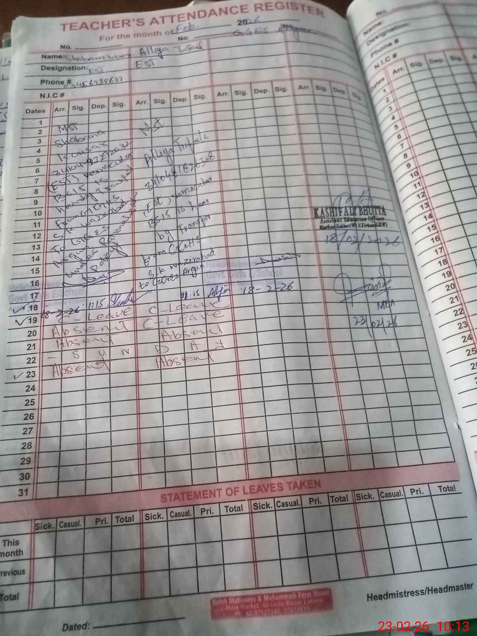 | 34**** | Sh**** Ko**** | EST (Math) | Regular | 0 | 0 | 0 | 0 | 0 | 0 | 0 | 0 | 0 | Absent (Un-Authorized) |