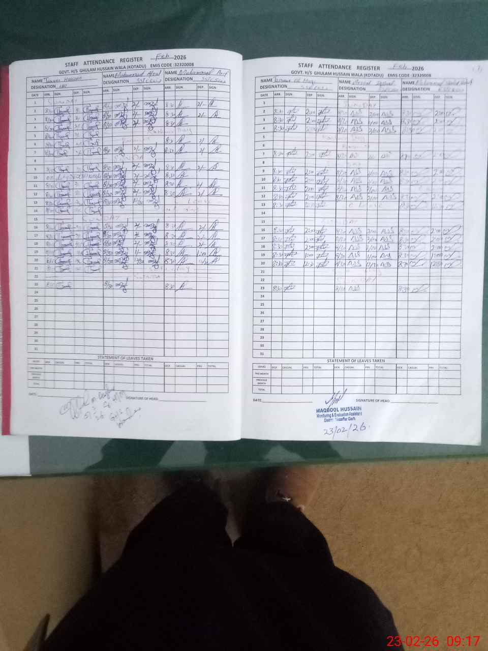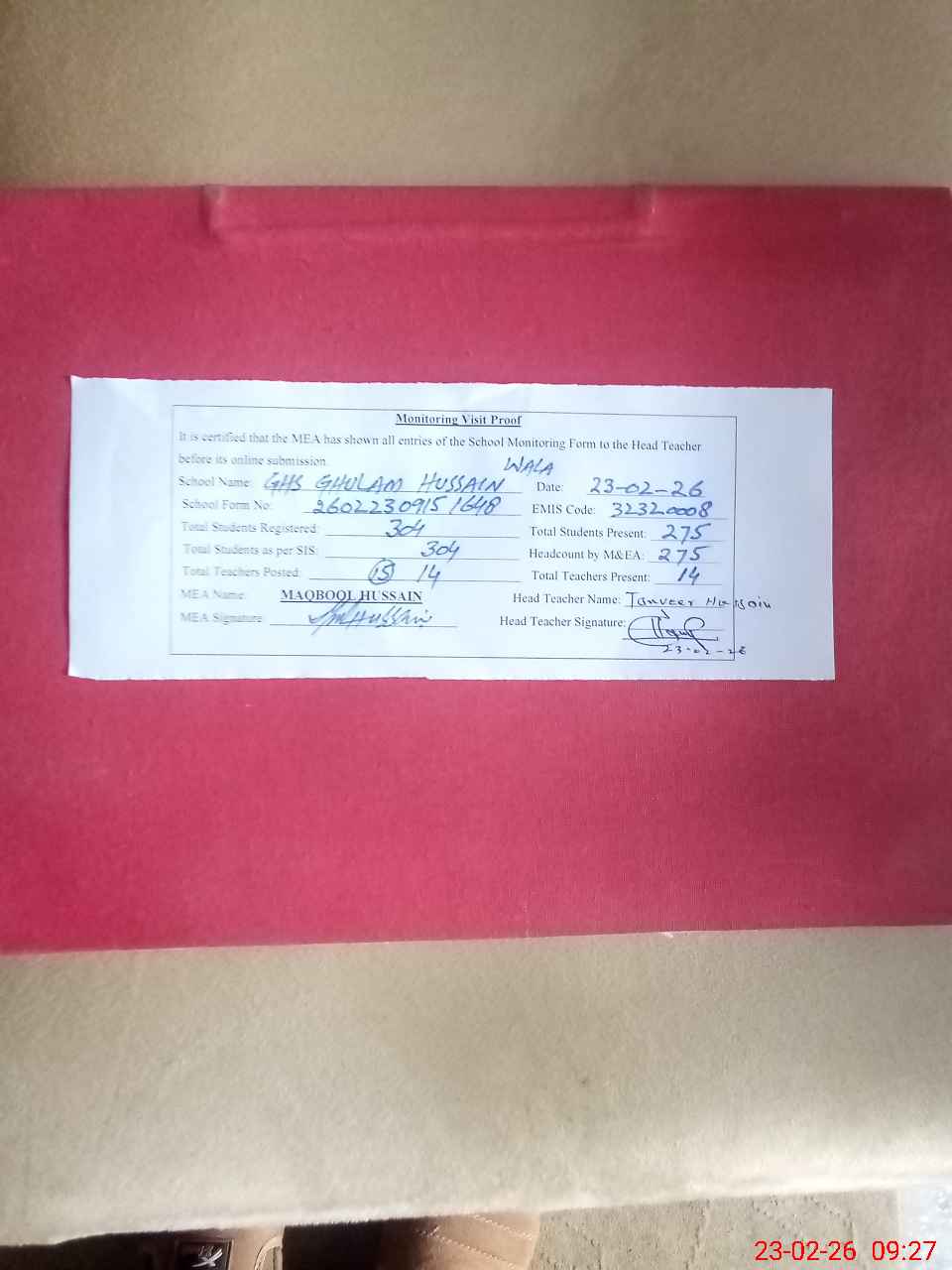 | EMIS Code: 32320008 | Name of School: GHS GHULAM HUSSAIN WALA | |||