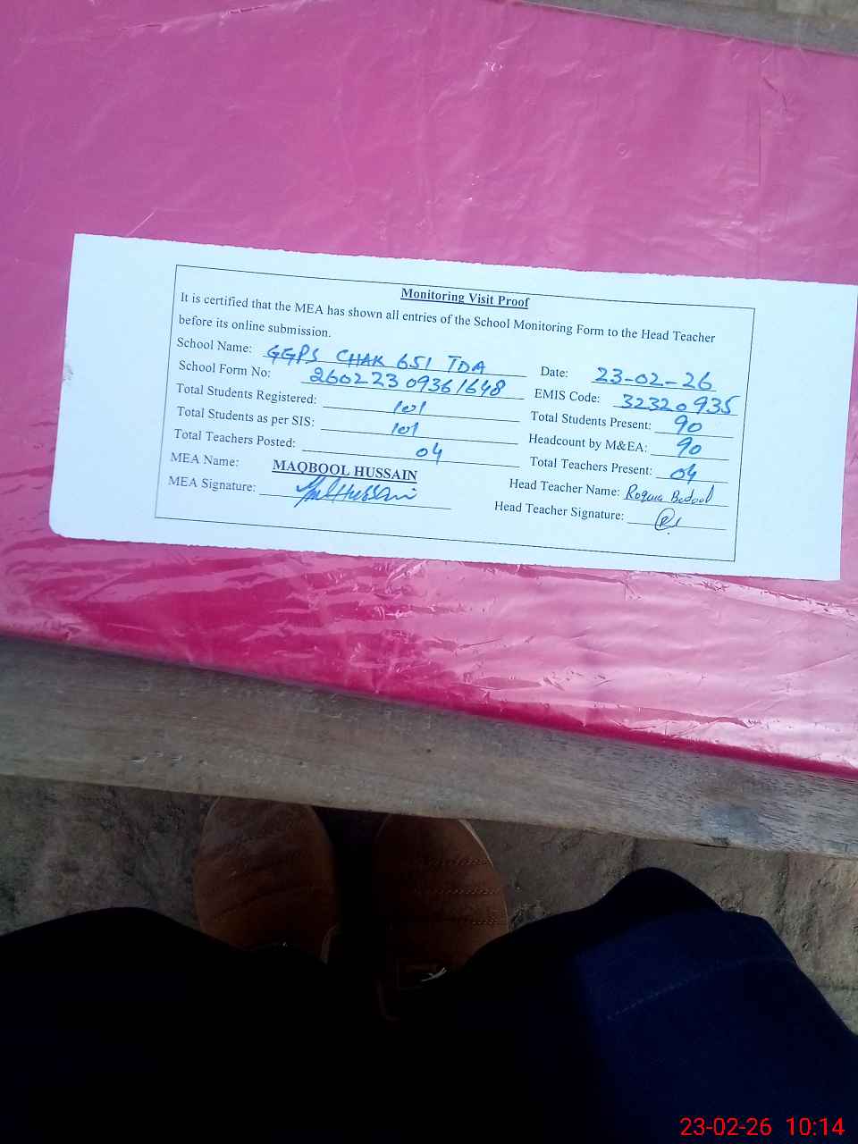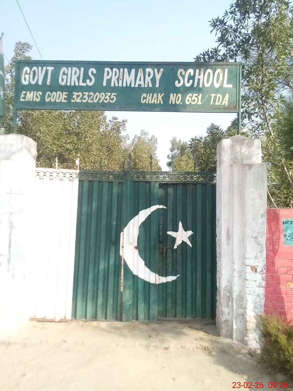 | EMIS Code: 32320935 | Name of School: GGPS CHAK NO 651 TDA | |||