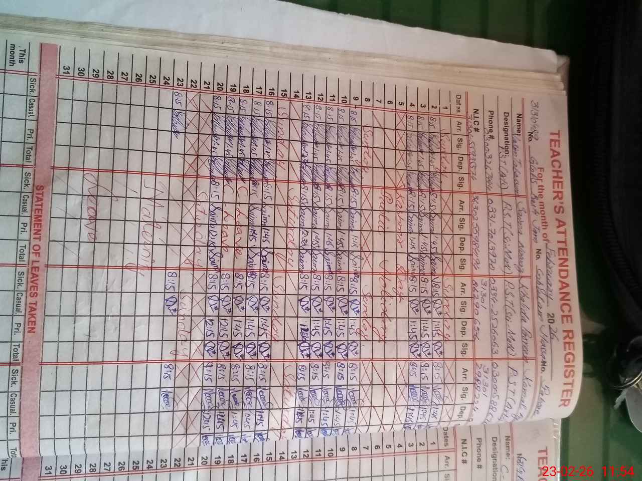 | Name: Na**** Ta**** Designation: (School Headmaster's/Headmistress's) PST Phone/Cell Number: 03**** |