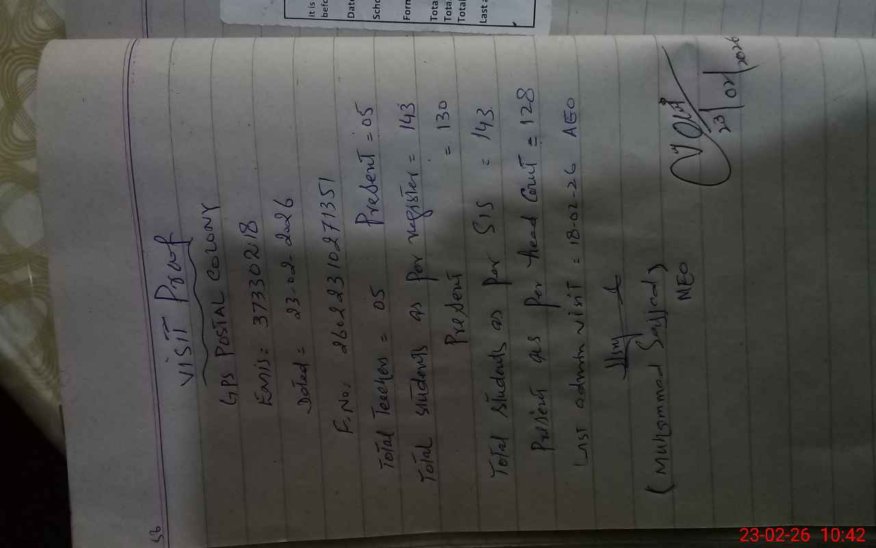 | EMIS Code: 37330218 | Name of School: GPS POSTAL COLONY | |||