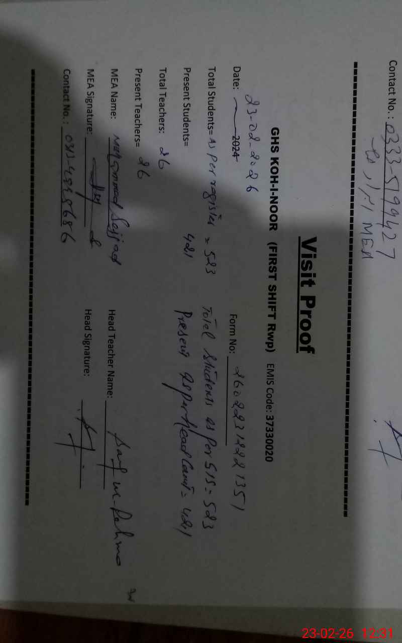 | EMIS Code: 37330020 | Name of School: GHS KOH-I-NOOR RAWALPINDI | |||