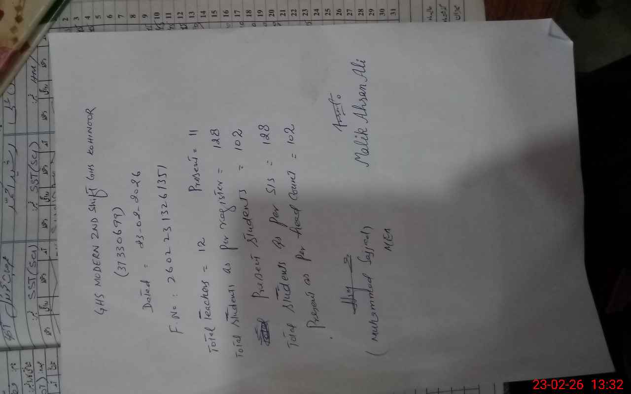 | Name: Sh**** Af**** Designation: (School Headmaster's/Headmistress's) I/C Headmaster Phone/Cell Number: 03**** |