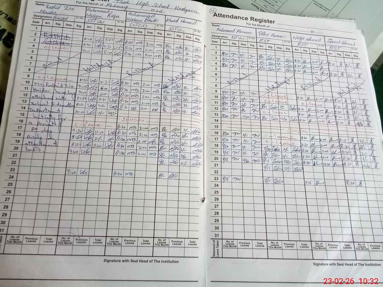 | Remarks (Use Separate Page if Required): NOT TEACHING MR FAISAL MASIH FOUND ABSENT WEF 19/01/2026 TO TILL DATE DUE TO SAID SCHOOL FACED LOT OF PROBLEM REGARDING CLEANINESS | |||||