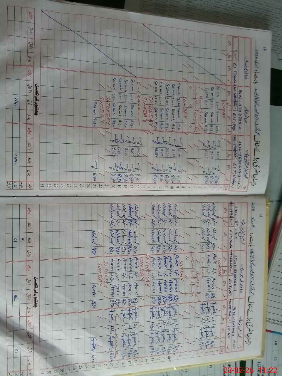 | CNIC | Full Name | Designation | R/C | Absence During Last Calender Month |