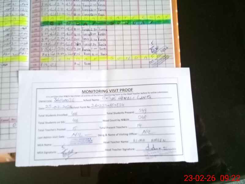 | Attendance Register | Head Teacher | MEA with School | Visit Proof |