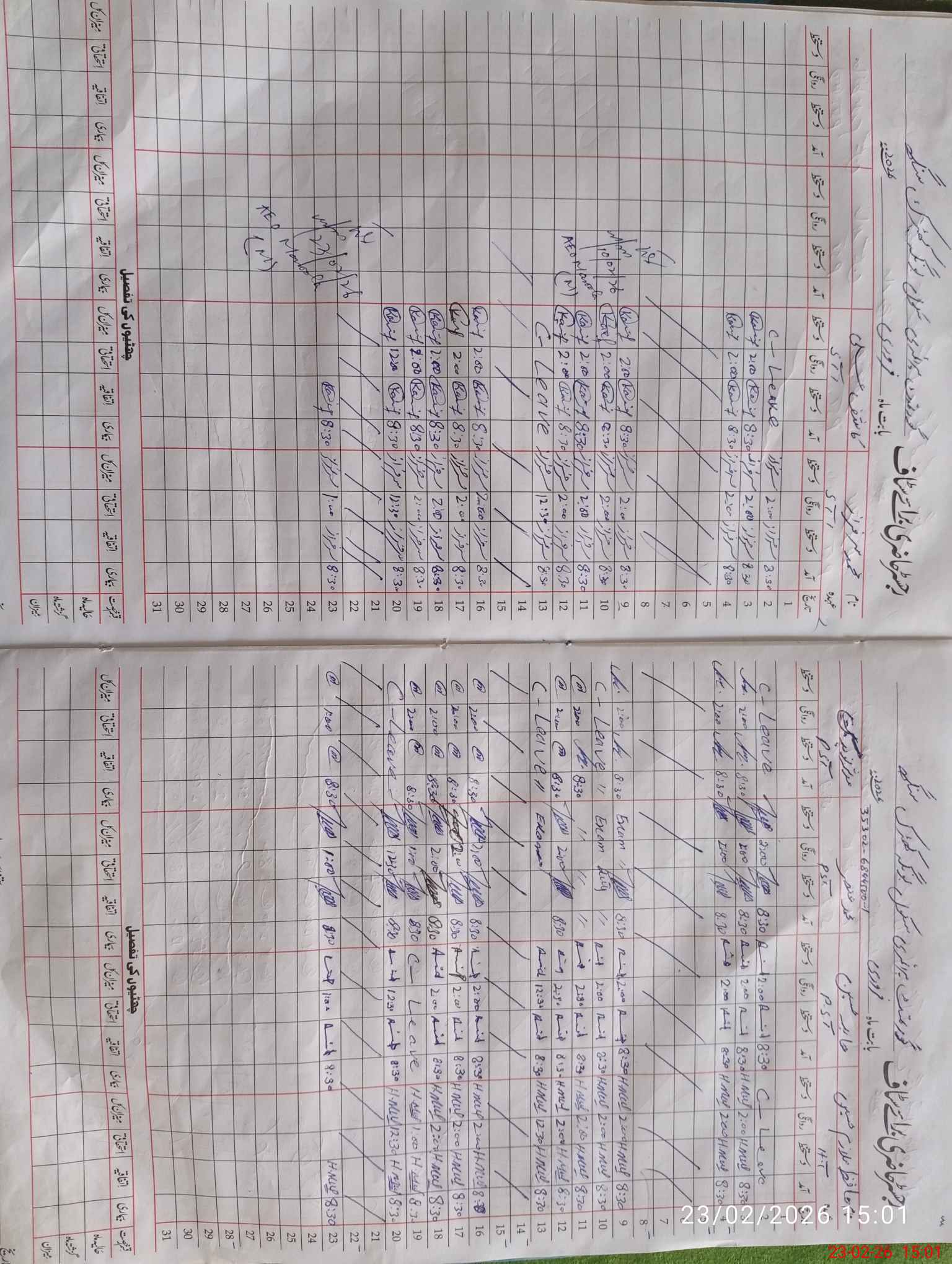 | CNIC | Full Name | Designation | R/C | Absence During Last Calender Month |