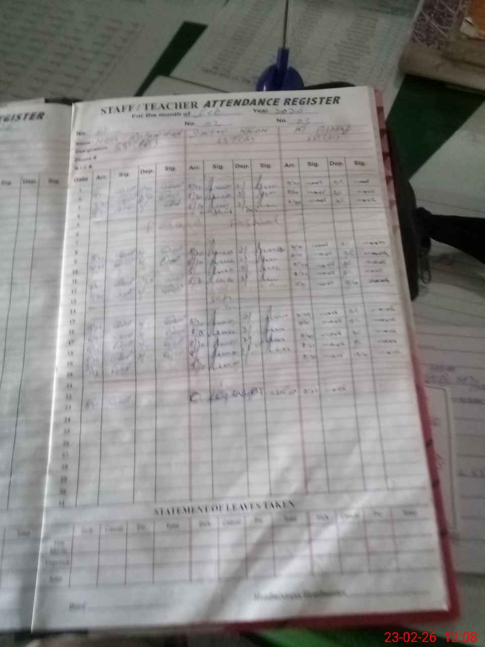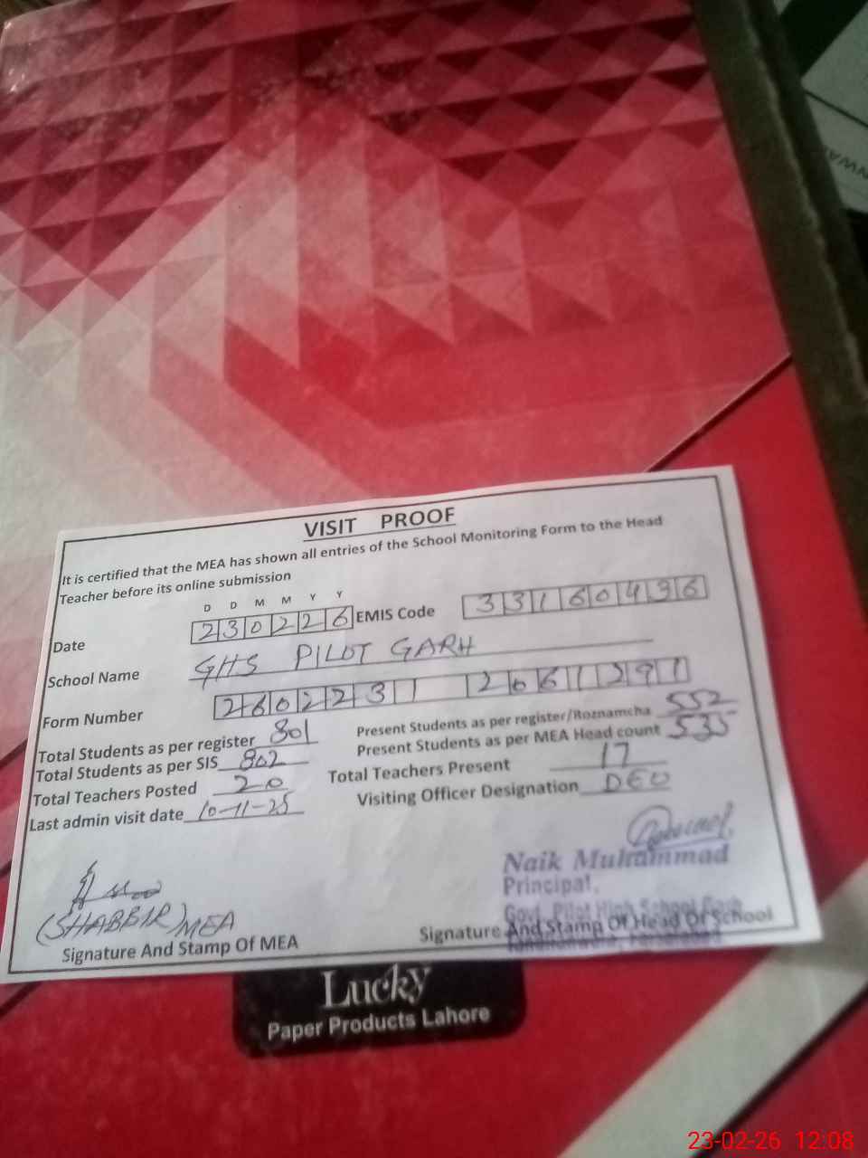 | Attendance Register | Head Teacher | MEA with School | Visit Proof |