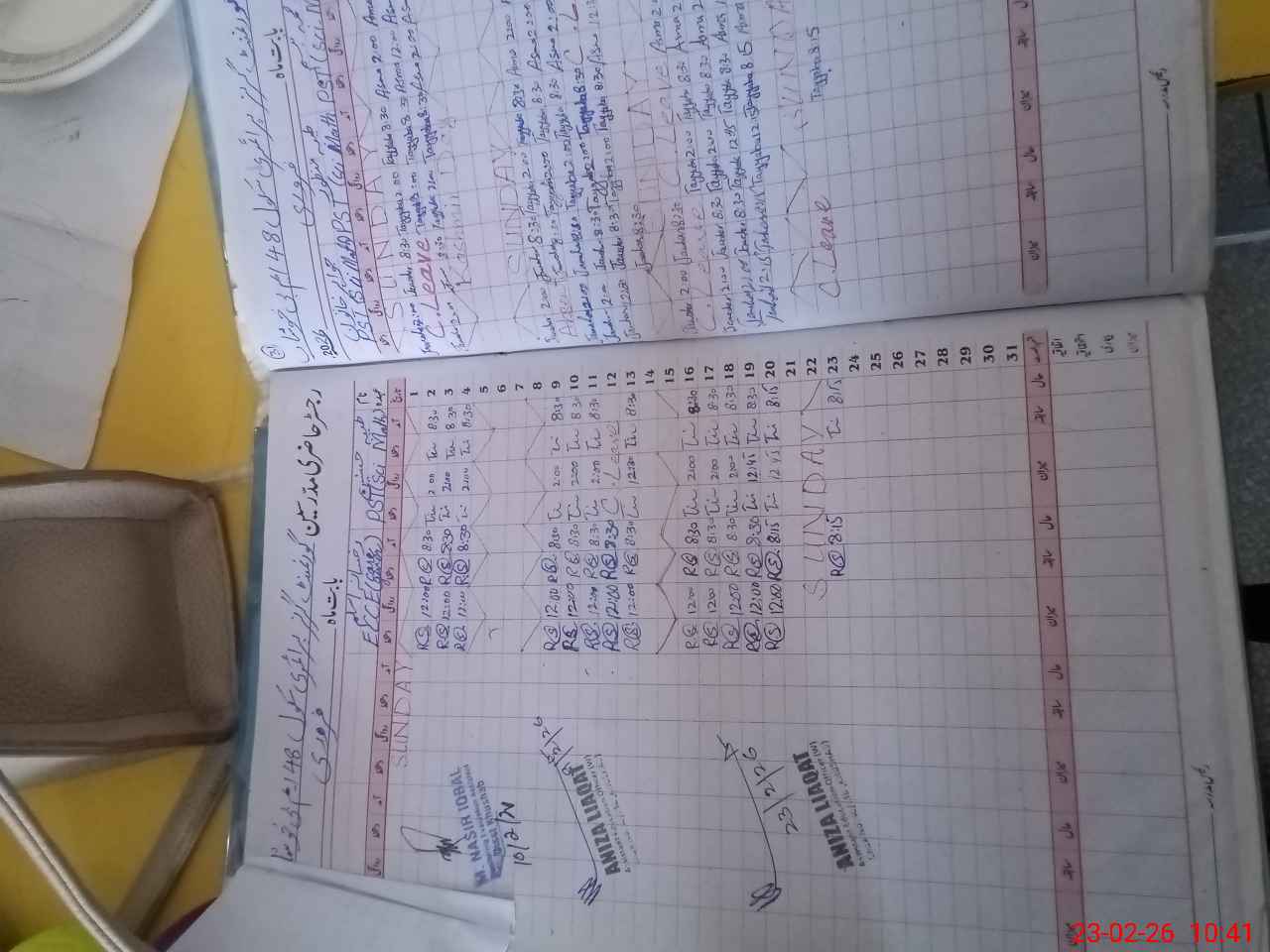 | CNIC | Full Name | Designation | R/C | Absence During Last Calender Month |