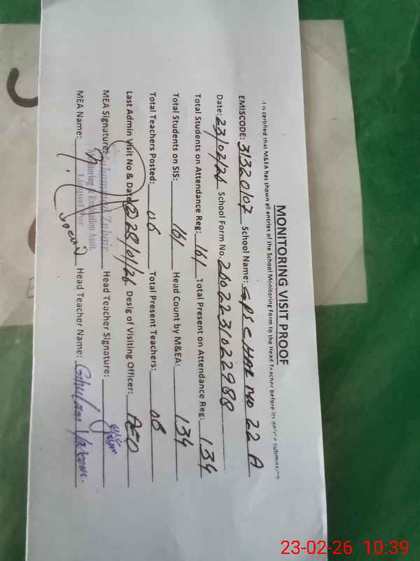 | EMIS Code: 31320107 | Name of School: GPS CHAK 22 A | |||