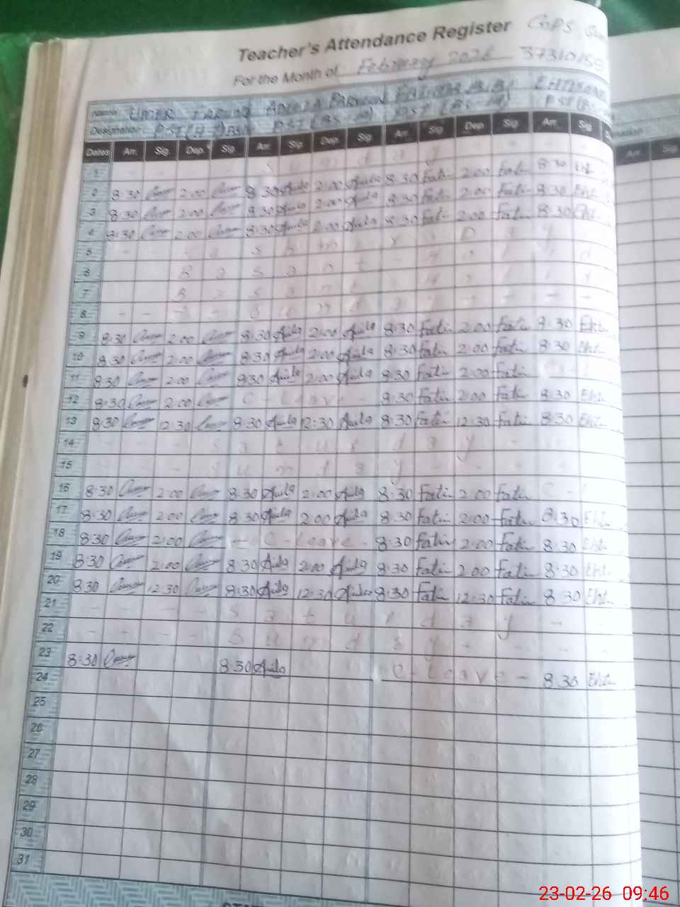 | Name: Um**** Fa**** Designation: (School Headmaster's/Headmistress's) PST (Sci Math) Phone/Cell Number: 03**** |