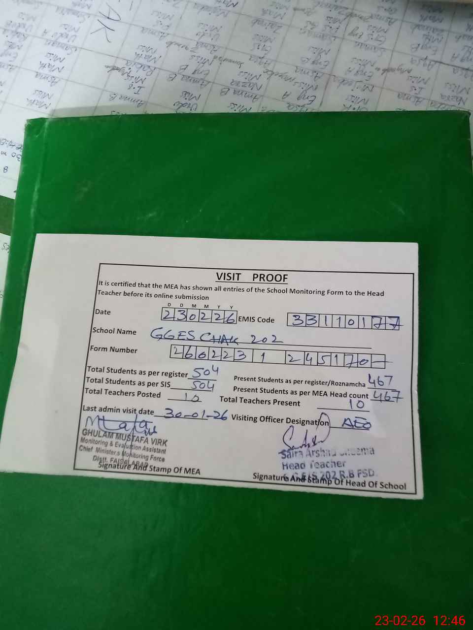 | EMIS Code: 33110177 | Name of School: GGES CHAK 202 RB KATCHY ABADI | |||