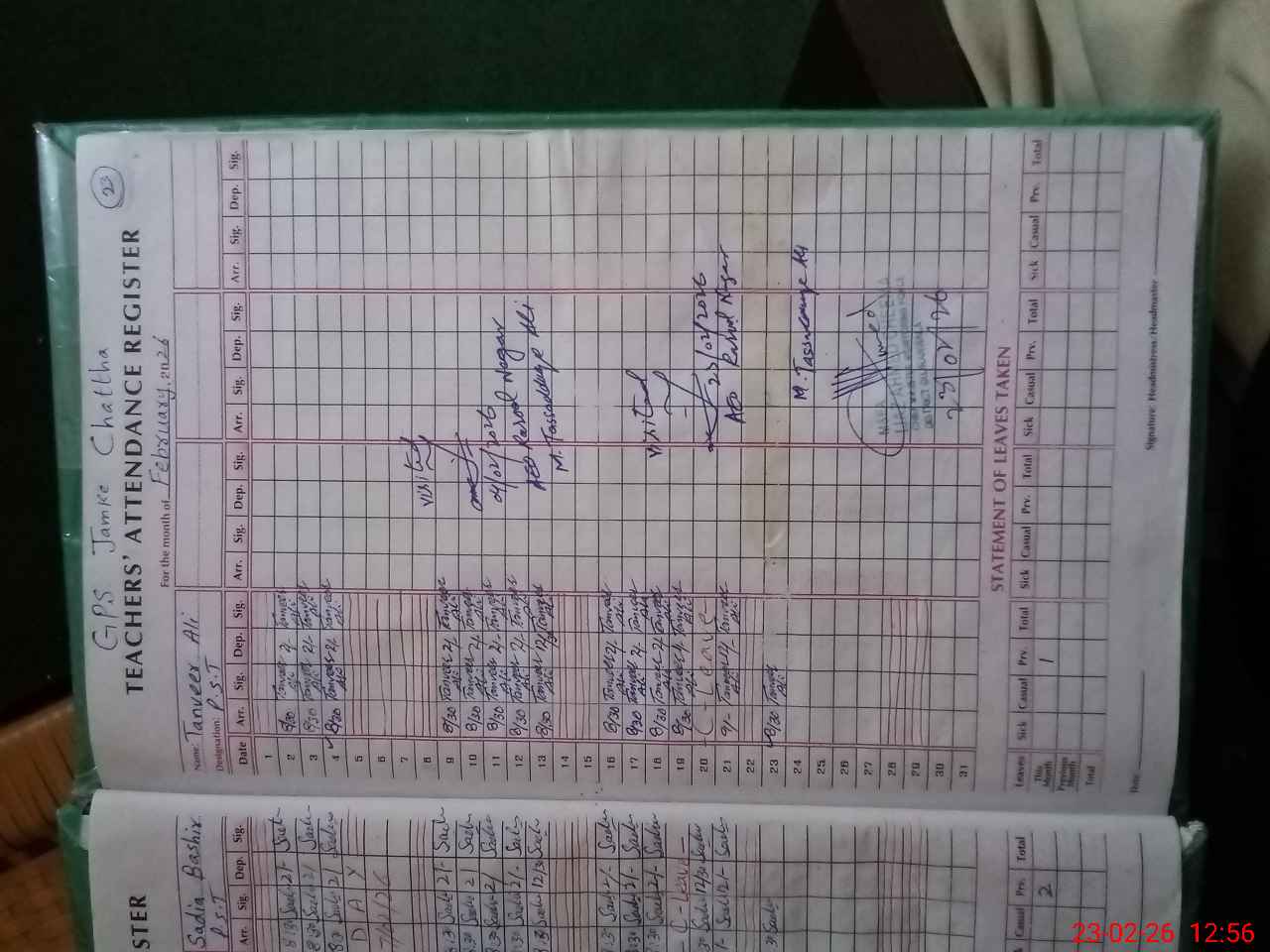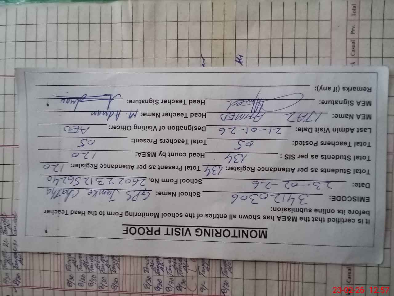 | Attendance Register | Head Teacher | MEA with School | Visit Proof |