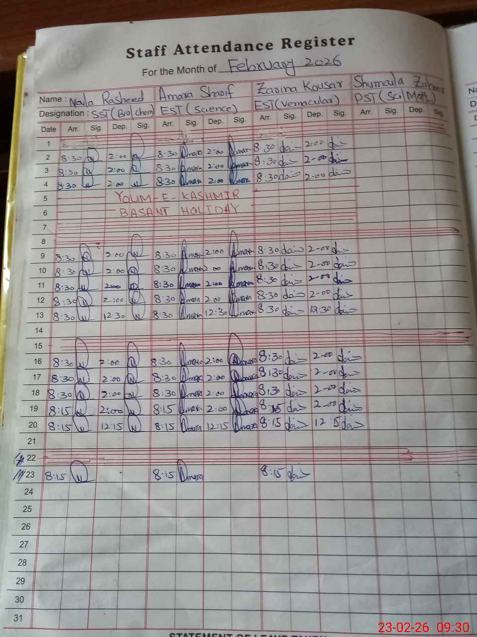 | 31**** | Sh**** Za**** | PST Science/Maths | Regular | 31 | 0 | 0 | 0 | 0 | 0 | 0 | 0 | 0 | Iddat |