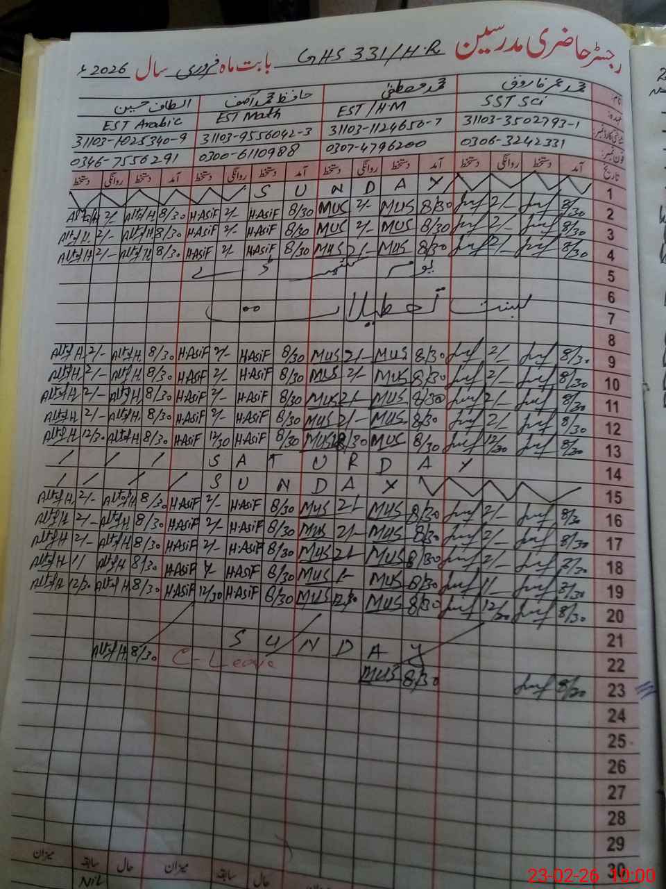 | 31**** | Mu**** Um**** Fa**** | SST Science | Regular | 0 | 0 | 0 | 0 | 0 | 0 | 0 | 0 | 0 | Absent (Un-Authorized) |