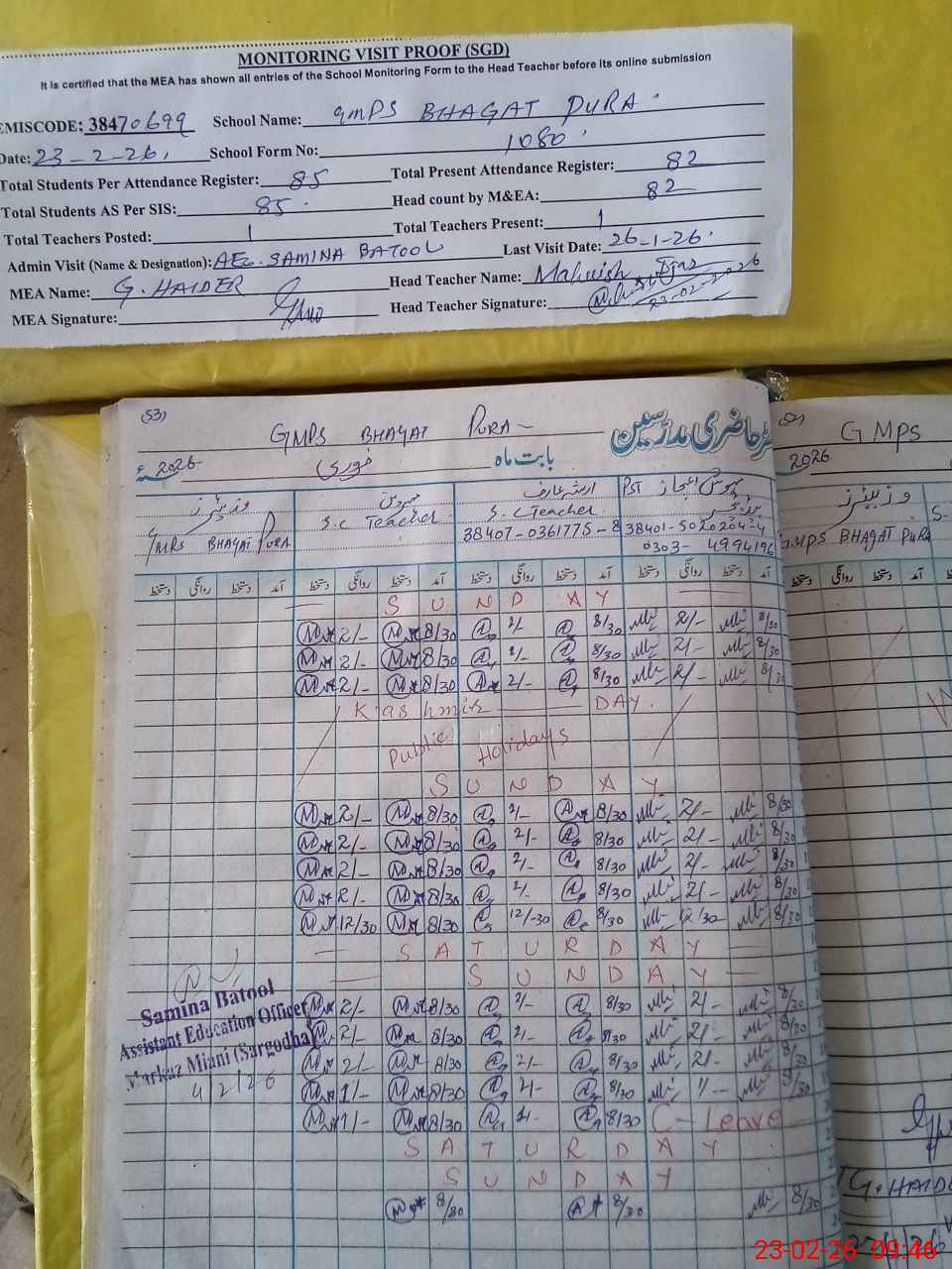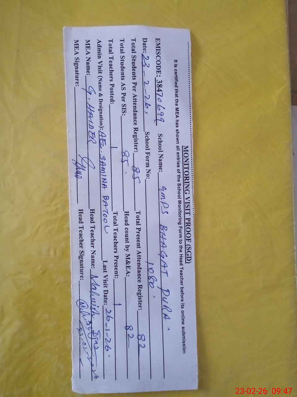 | EMIS Code: 38470699 | Name of School: GMPS BHAGAT PURA | |||