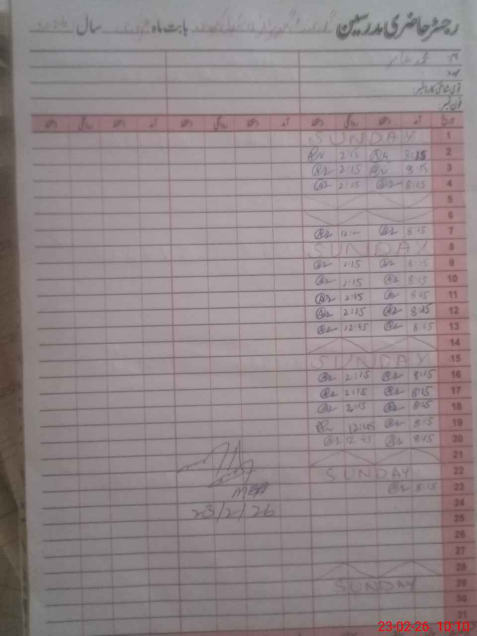 | CNIC | Full Name | Designation | R/C | Absence During Last Calender Month |