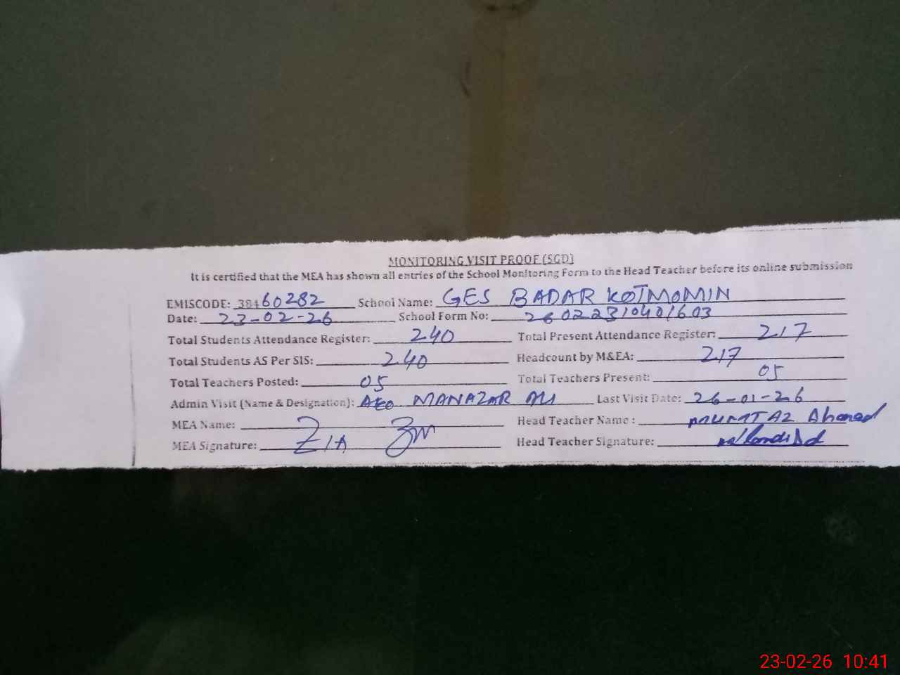 | EMIS Code: 38460282 | Name of School: GES BADER KOT MOMIN | |||